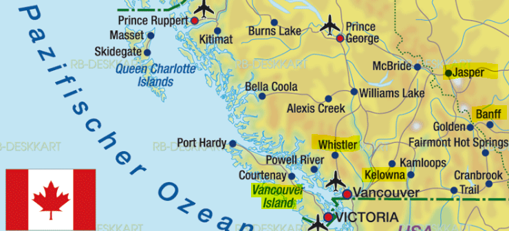 In Kanada geht es erst mal für ein paar Tage nach Vancouver Island und danach ins Okanagan Valley und in den Banff und Jasper Nationalpark in den Rocky Mountains. Danach über Whistler wieder zurück nach Vancouver bevor es nach Alaska weitergeht.